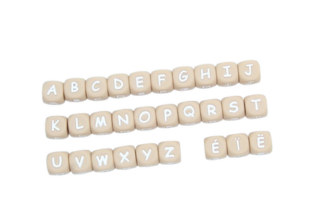 Lettre 12mm Exclusivité: Taupe -Blanc - Perle en silicone