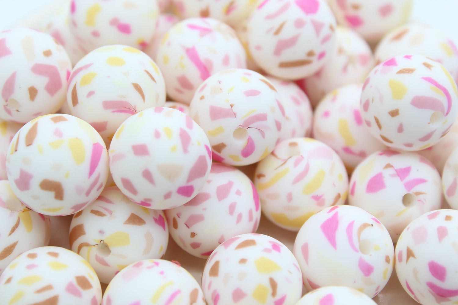 Perle imprimée à motif - Perle en silicone - Terrazzo rose
