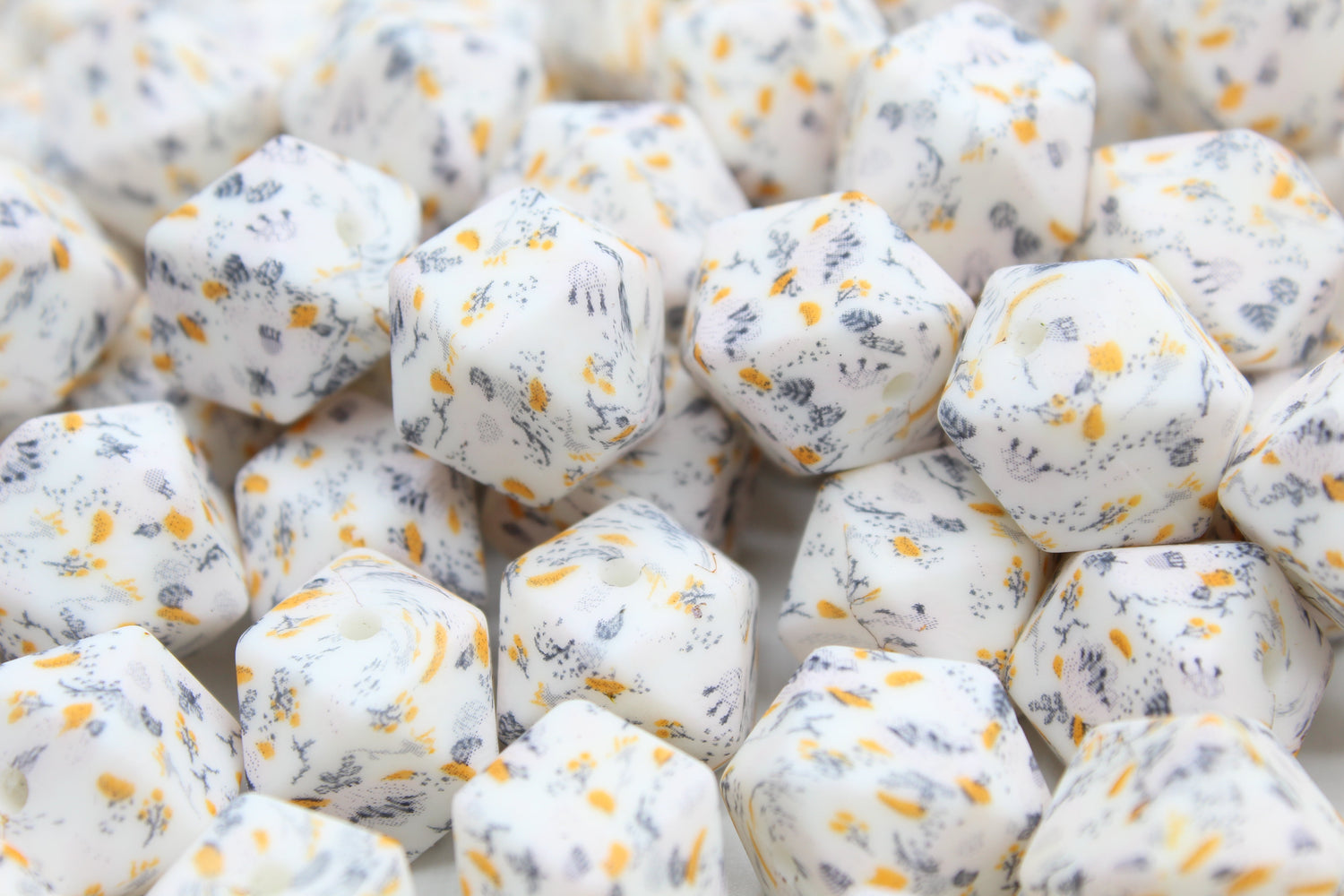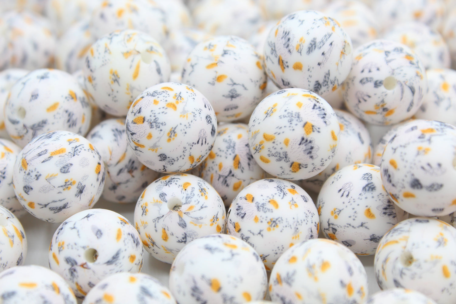 Les perles imprimées sont disponibles avec plusieurs motifs et en différentes formes.