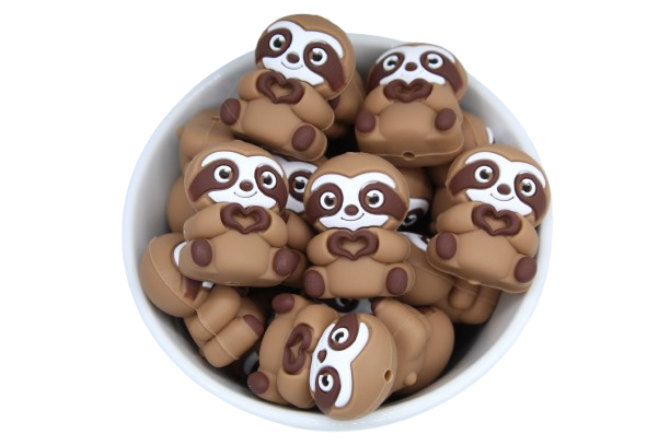 Perle en silicone en forme de paresseux avec mains en forme de cœur 3D.